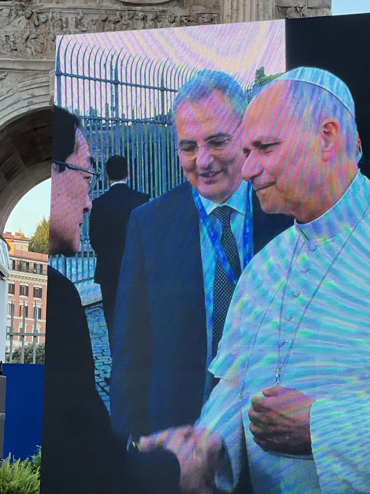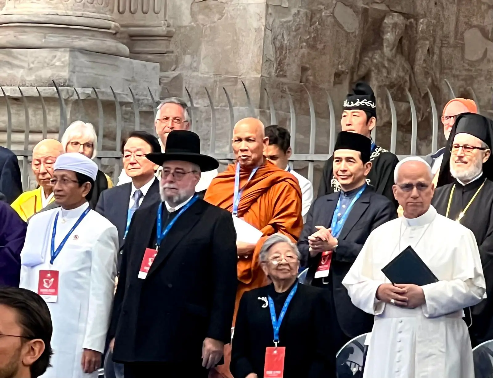 Dopo la tradizionale preghiera delle Chiese cristiane riunite all’interno del Colosseo, Papa Leone XIV ha salutato uno ad uno i rappresentanti delle varie religioni mondiali invitati ad assistere alla cerimonia sul palco appositamente allestito sotto l’Arco di Costantino. Tra di essi Hirotsugu Terasaki, vicepresidente della Soka Gakkai, ha preso parte alla cerimonia sul palco, accanto ai principali leader delle religioni mondiali.