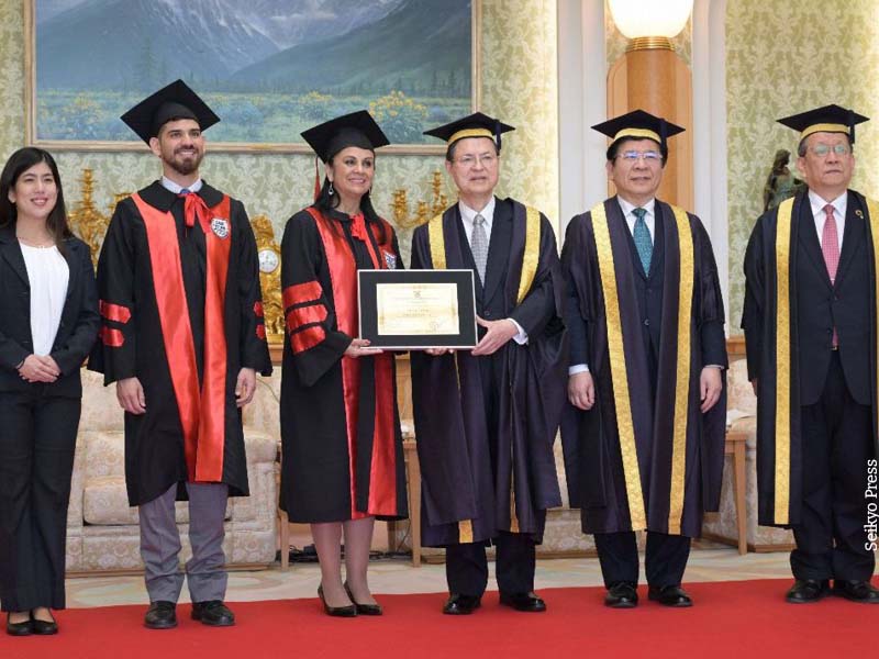 L’Università paraguaiana conferisce il dottorato honoris causa al presidente Ikeda Il 13 dicembre si è svolta la cerimonia di conferimento del Dottorato honoris causa al presidente Ikeda da parte dell’Università Iberoamericana del Paraguay (UNIBE), in riconoscimento del suo contributo all‘’’educazione e alla cultura della pace. Il conferimento del Dottorato è stato deciso a marzo. Il rettore dell‘’’UNIBE, Sanie Romero de Velázquez, e il direttore della scuola di specializzazione, Mgs. Eduardo Velázquez hanno partecipato alla cerimonia di premiazione tenutasi presso l’Università Soka in Giappone. Il consigliere esecutivo dell’Università Soka Hiromasa Ikeda ha ricevuto la laurea a nome del maestro Ikeda. Questa è la 409esima onorificenza accademica conferita al maestro Ikeda. il copresidente della SGI europea partecipa alla Conferenza annuale del Club di Roma Il 20 e 21 novembre, il copresidente della Soka Gakkai europea Robert Harrap ha partecipato alla Conferenza annuale del Club di Roma tenutasi a Winterthur, in Svizzera. Durante…