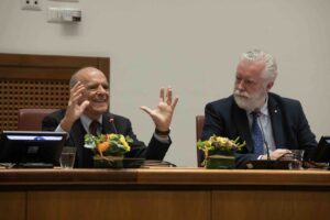 Carlos Álvarez Pereira (Segretario generale del Club of Rome), impossibilitato a partecipare in presenza ha inviato un messaggio di saluto: «Sono certo che la ricchezza degli interventi nutrirà dialoghi fruttuosi e significativi. Al centro delle mie riflessioni in questi giorni c’è la necessità di creare nuovi modi di dare senso agli avvenimenti del mondo, per poter prendere decisioni diverse. Se ascoltiamo molti esperti e leader, soprattutto occidentali, il futuro sarà pieno di scontri e conflitti. Ma questo scenario, pur probabile, mi ricorda le tragedie greche, in cui il protagonista, reagendo con paura alla profezia dell’oracolo, finisce per accelerarne l’avverarsi. Per evitare tragedie che si autoalimentano, dobbiamo lavorare sullo scenario meno probabile: quello fondato su speranza e amore, che apre la strada a un mondo equo, pacifico e sano — la nostra stella guida». Non è un generico ottimismo sul futuro, ma un invito alla riflessione, all’unione e all’azione, mosse da speranza e amore, se solo apriamo le nostre prigioni mentali ad altri modi di interpretare il mondo.