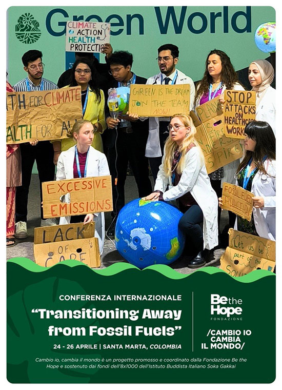 A Santa Marta per costruire un futuro libero dai combustibili fossili, fondato su speranza e responsabilità condivisa. La Fondazione Be the Hope partecipa alla Conferenza internazionale Transitioning Away from Fossil Fuels (Santa Marta, Colombia – 24-29 aprile 2026) con i rappresentanti del progetto “Cambio io, cambia il mondo”. Promossa da Colombia e Paesi Bassi, la conferenza rappresenta il primo spazio globale interamente dedicato alla transizione dai combustibili fossili, con l’obiettivo di superare lo stallo nei negoziati della Convenzione quadro delle Nazioni Unite sui cambiamenti climatici (United Nations Framework Convention on Climate Change – UNFCCC), nell’ambito delle Conferenze delle Parti (COP).