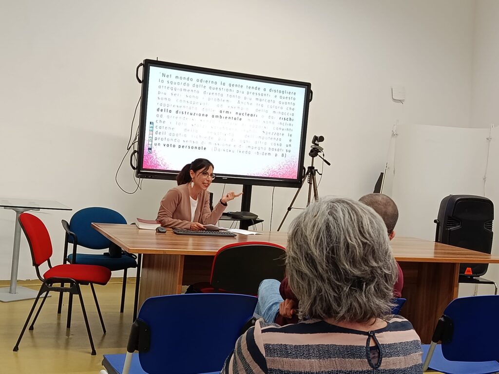 Relatrice dell’incontro, in rappresentanza dell’Istituto Buddista Italiano Soka Gakkai, è stata Angela Modica Scala, ricercatrice in Sviluppo Sostenibile e Cambiamento Climatico, che ha introdotto il tema della giornata partendo dal lignaggio del Buddismo di Nichiren Daishonin e ripercorrendo il pensiero del maestro Daisaku Ikeda. Al centro dell’intervento, il concetto di creazione di valore come fondamento di una pace globale e duratura. L’incontro ha alternato momenti di approfondimento a fasi interattive, coinvolgendo il pubblico in un percorso partecipato. Tra i passaggi più significativi, il richiamo al concetto che “la speranza è una scelta”, titolo di un libro del maestro Ikeda. In questo contesto sono state citate figure come Malala Yousafzai e Nelson Mandela, esempi di resilienza e impegno per il cambiamento.